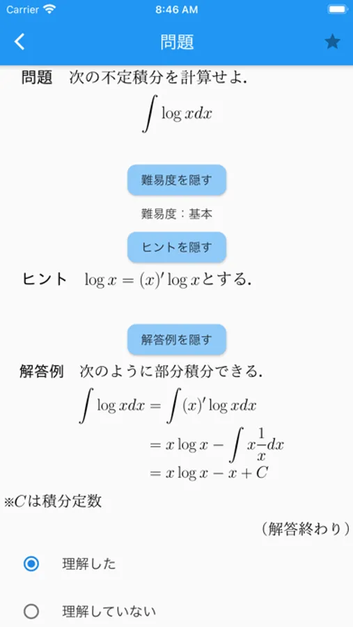 教科書レベルの内容を理解した人が演習をするときに効果的なアプリです。