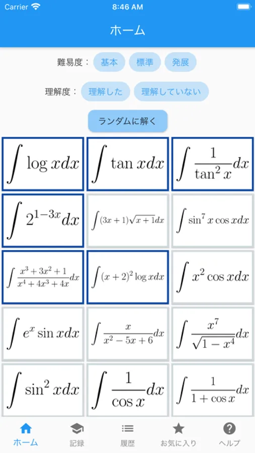 難易度で問題を絞ったり、ランダムに問題を解いたりと、取り組み方は自由自在です。