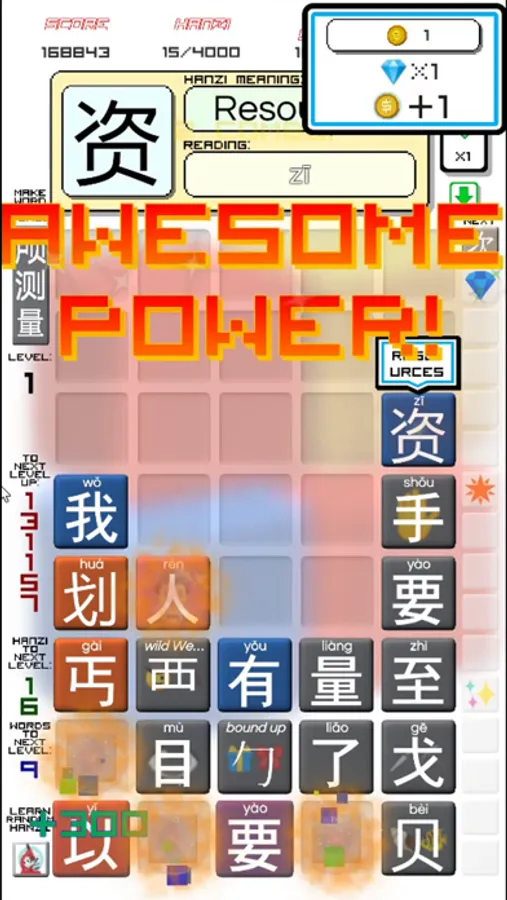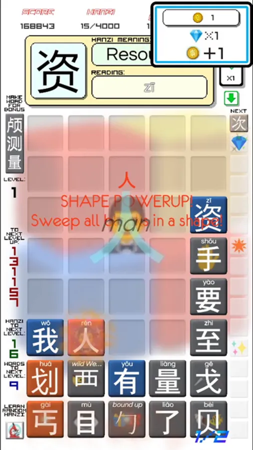 Chinese hanzi are the ideograms found in Chinese that are kind of like letters, but represent an idea, like gold, fish, sun, etc.! Now learn them in this falling block puzzle hanzi game where you'll find emoji to help you learn hanzi, POWERUPS that relate to the hanzi, and a fully functional glossary. You can even narrow down your learning list to hanzi for the HSK! You can even review hanzi from your text book lesson, like Integrated Chinese! You can also play in a learning mode with more time between hanzi! Learning hanzi has never been easier or more fun!