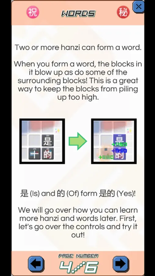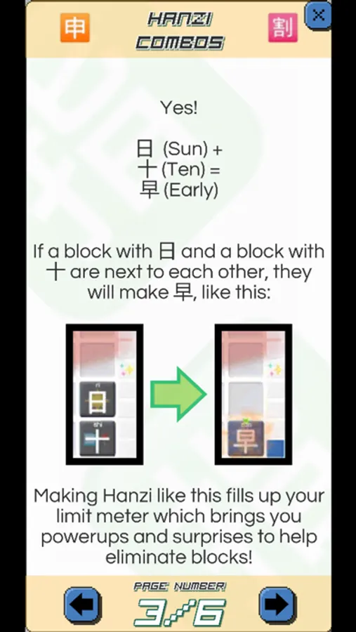 Learn Chinese hanzi by dropping blocks to make hanzi and words! Make hanzi from their parts and words from other hanzi! Blow them up by making words or filling your limit meter and they all EXPLODE!
