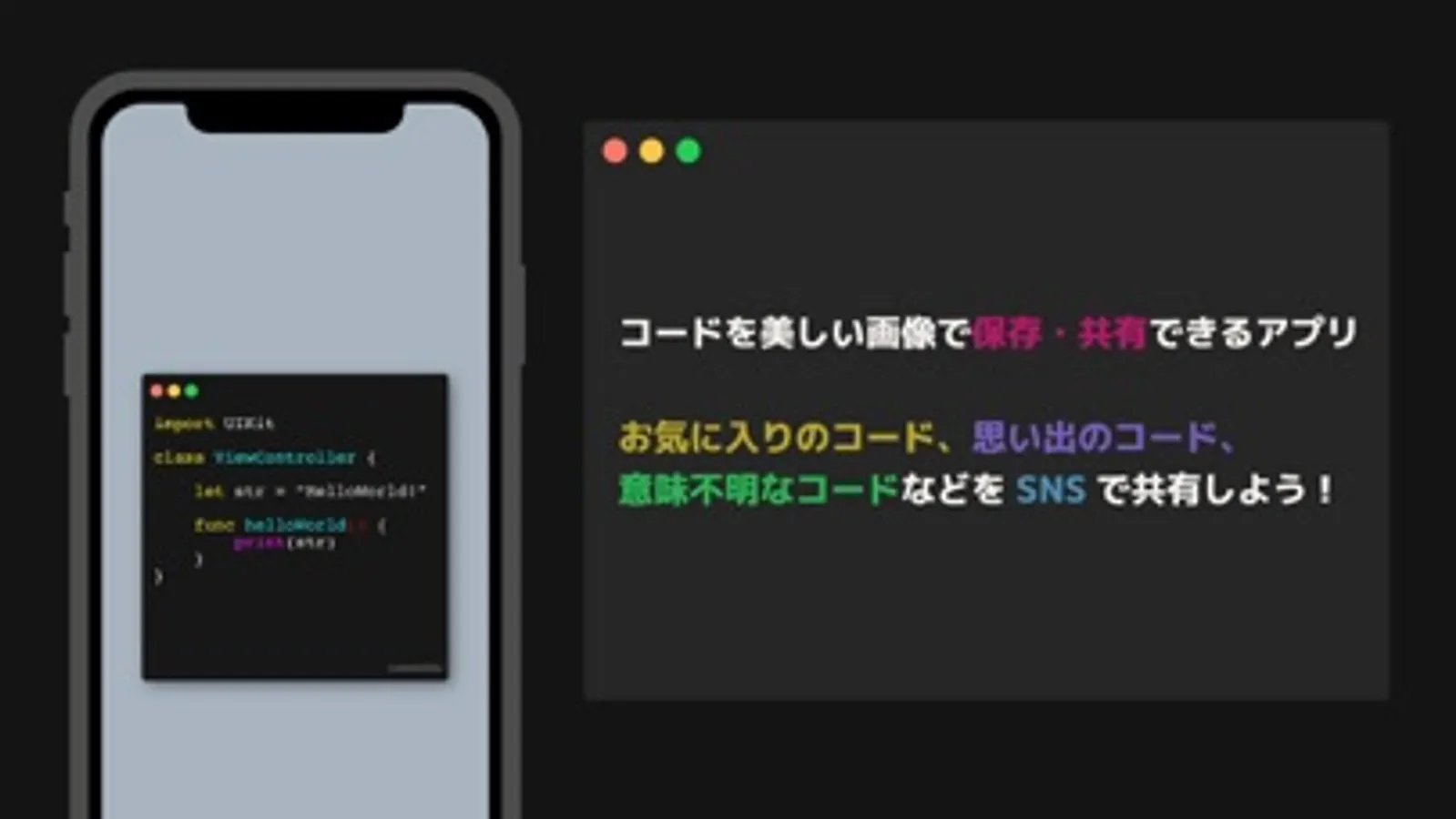 プログラミングコードを美しく共有したいなと思い、このアプリを開発しました。