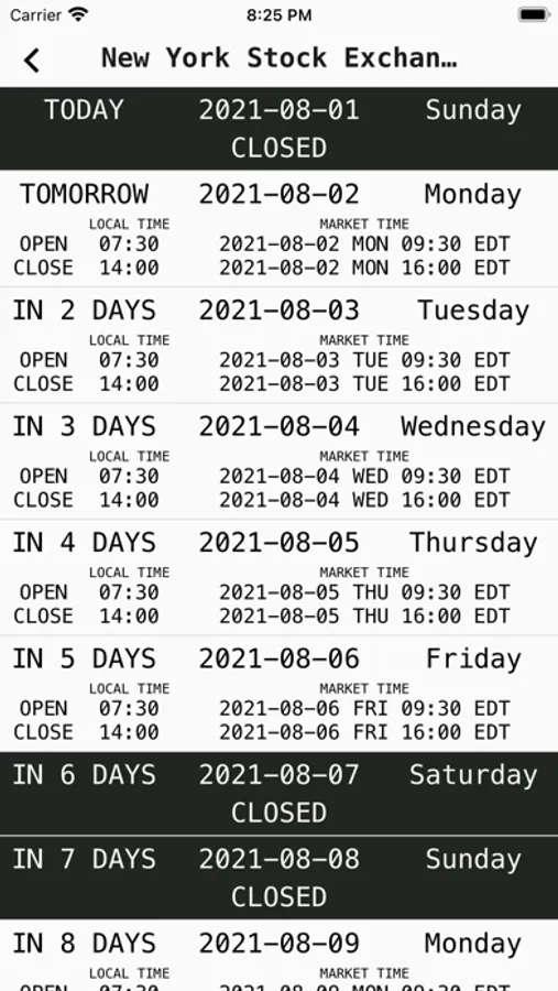 3. when market will open or close at exact time in your local time zone wherever you are