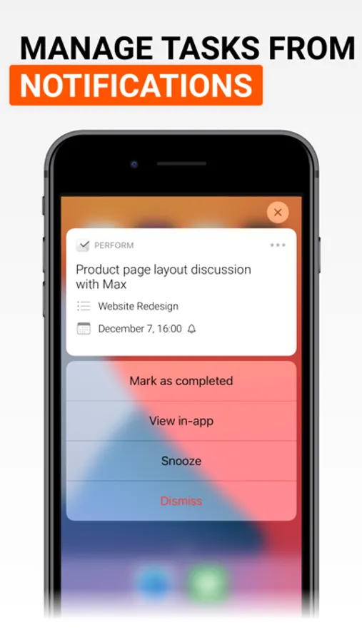 View extended task details, mark it as completed, snooze, or jump to the task details page in-app by holding and dragging the reminder when it pops up.