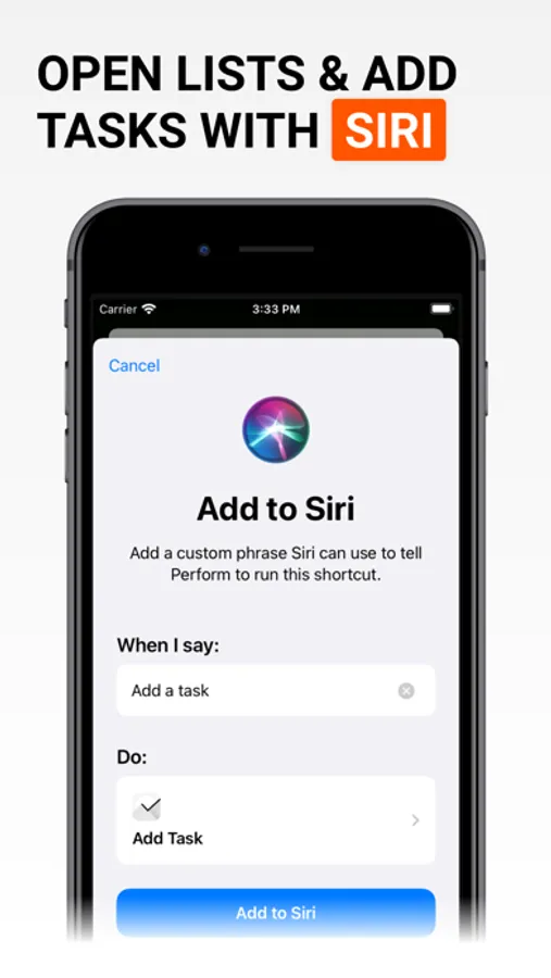 With Siri integration, you will be able to open task lists and add new tasks without even touching your iPhone.