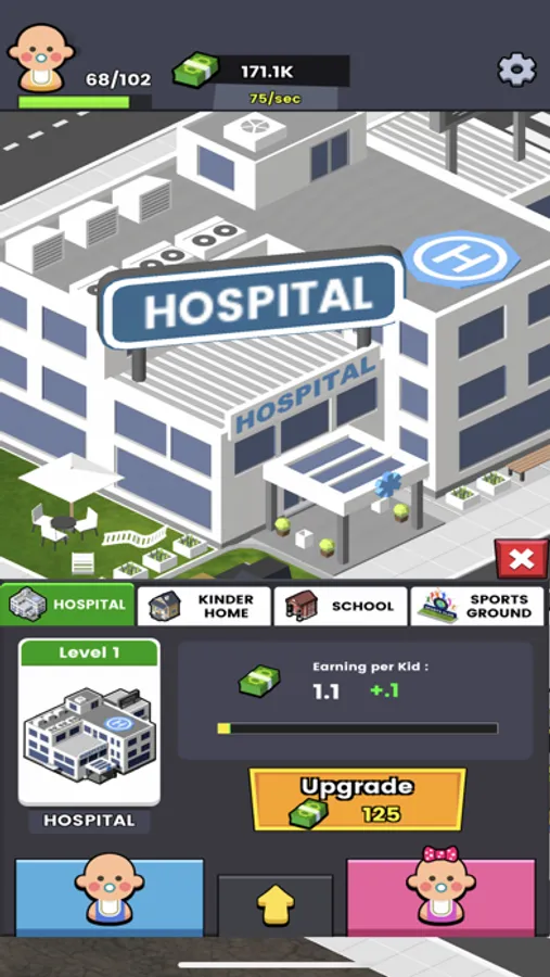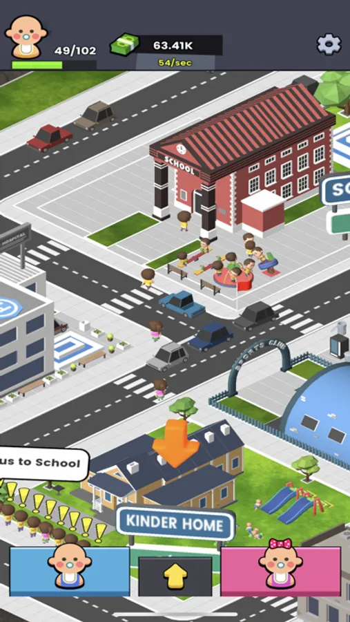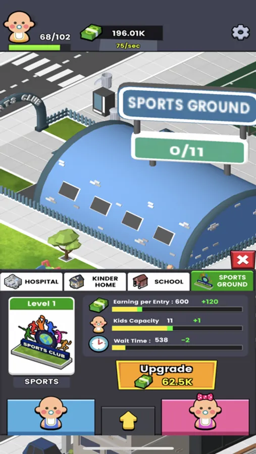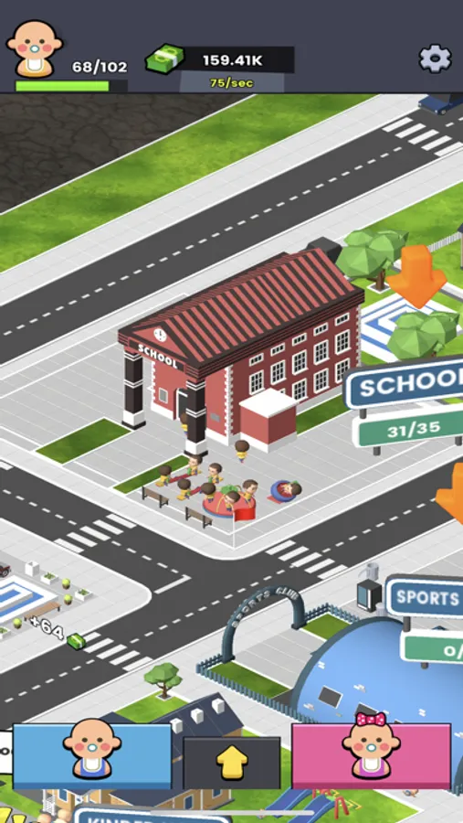 Upgrade house , School , Sports Club and all the requirements needed to grow a child into a grown up !