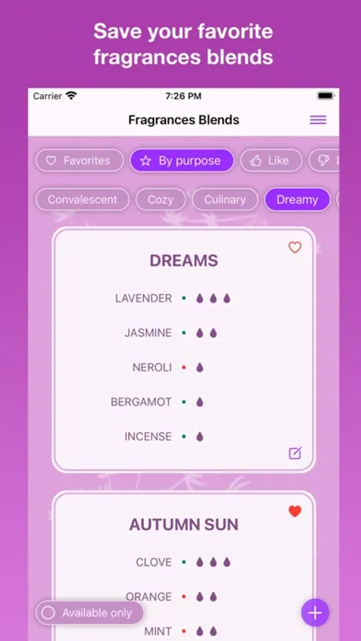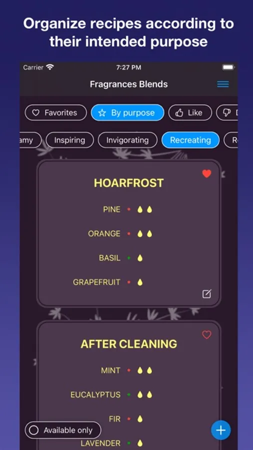 + Ability to display a list of recipes from oils that are available