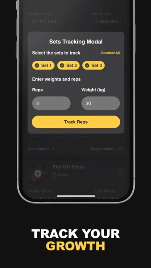 Easily monitor your lifting progress in one powerful app. Track your reps, weight lifted, sets, time for completion, recommended tempo AND receive suggestions on what weight you should be lifting based on your previous lifts to guarantee consistent progression.