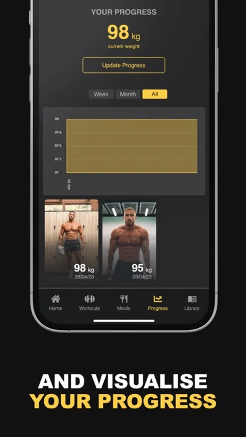 What gets measured gets managed. But often it’s way too inconvenient to keep a journal logbook of all your lifts. That’s why we’ve given you a custom dashboard to track your progress over time, monitor your weight changes and capture physique update pictures all in one place.