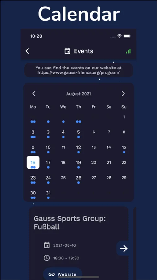 Get to know the Gauss Friends and their activities with this app: What is the Info-Point for and what happens every Tuesday at the Gauss Haus? The app introduces the international dance class, the cooking workshop, the weekly presentations and many more.