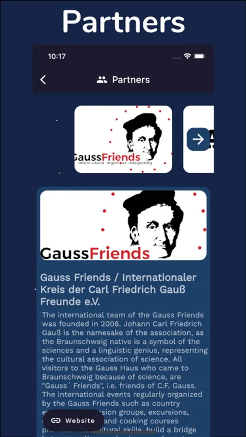 Who are the Gauss Friends and which organizations work together with the Gauss Friends? In this app you can get to know various associations and projects for international students in Braunschweig, and if you are interested you will be redirected directly to their website.