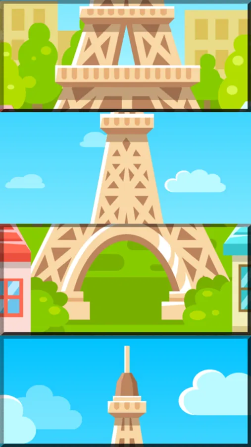 Unscramble the pictures to complete puzzles of world-famous landmarks.