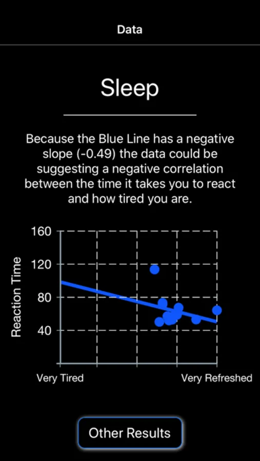 This App measures how your age, sleep, diet, exercise, mood and other time factors correlate with your reaction speed. By using a very simple exercise that measures your reaction speed the App quickly accumulates data. Over time you can begin to see how the stated variables impact your reaction speed.