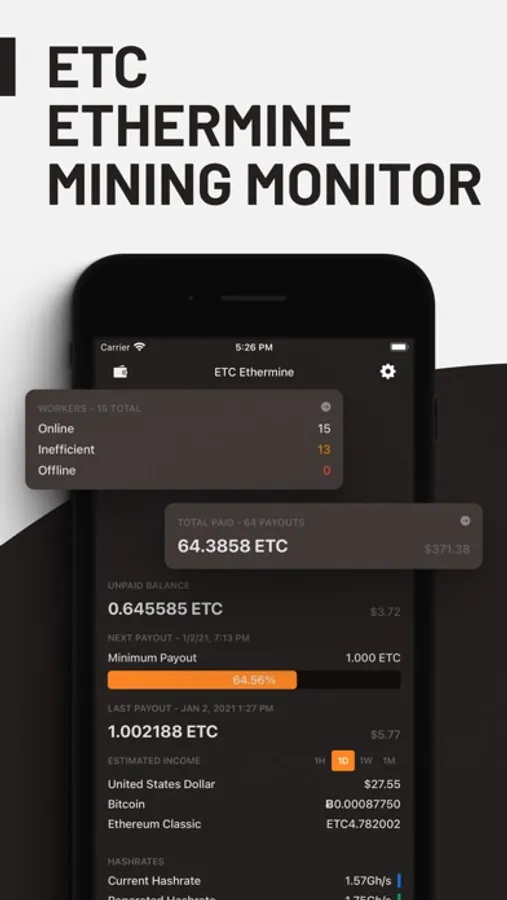 These are some of the great features Ethereum Classic (ETC) Ethermine Mining Monitor has to offer: