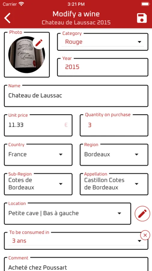 → Add your bottles of wine by indicating all the necessary information among the following criteria: