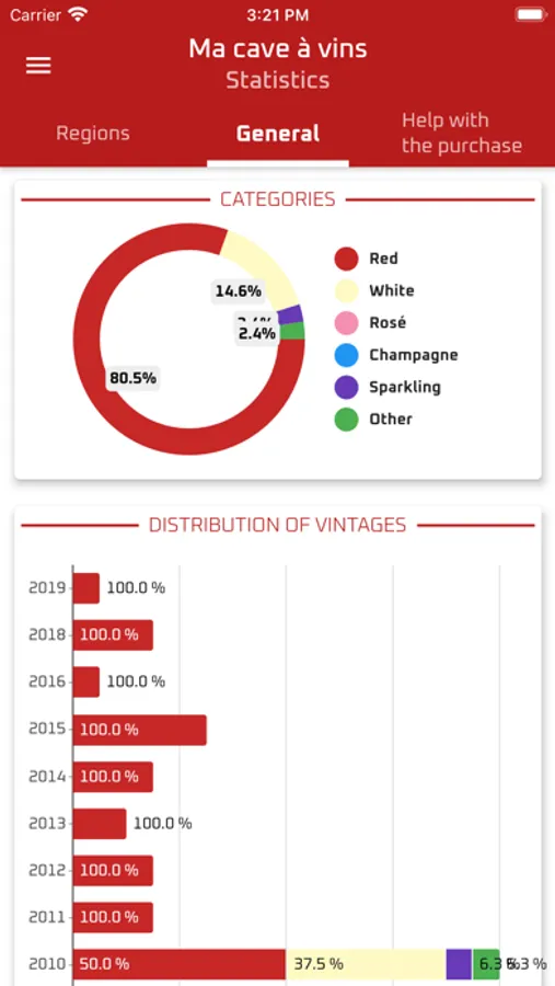 → Complete statistics to analyze in detail the composition of your cellar and know how to re-supply it