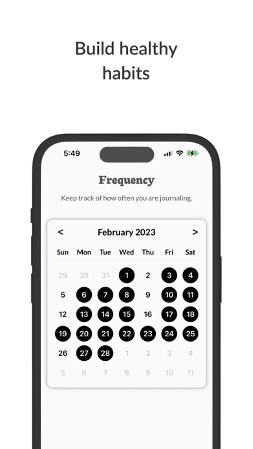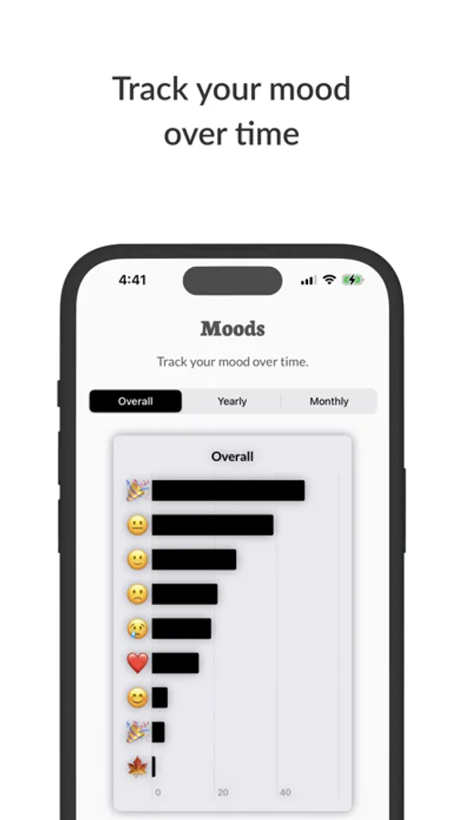 After a quick introduction, users can immediately begin designing their first journal and publishing journal entries. Your reflections and notes can be in the form of text, photos, or audio recordings. Tag your journal entries with mood emojis and use our helpful charts to track your mood over time. To help you stay focused and organized, journals can be created in one of five categories (Personal, Health, Work, Learning or Relationships).