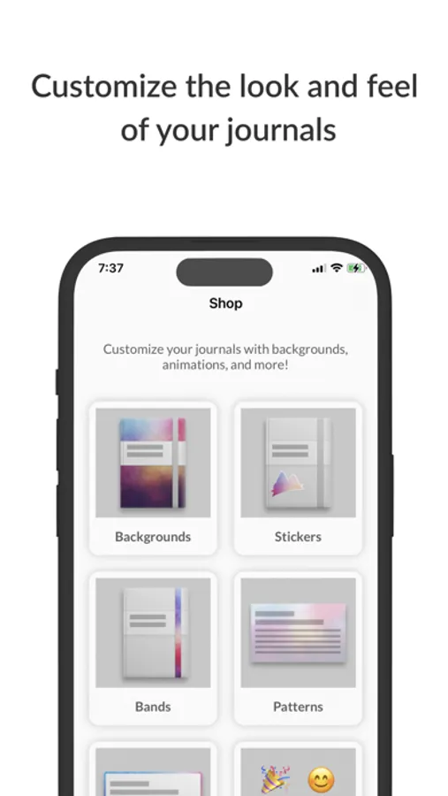 Customize the look and feel of your journals with a broad selection of unique designs. Personalize and style your journals with endless combinations of background images, patterns, frames, journal bands, and stickers. We are continually adding new ways for you to express yourself and make your journals your own!