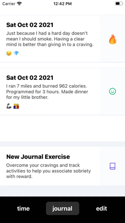 The app comes with built in guided journaling exercises for activities and cravings. If you follow them, they are designed to help you associate activities like exercise, being social, and learning, with reward.