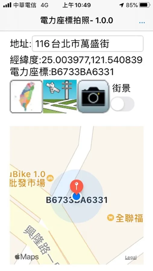 可為此電力座標位置拍照做紀錄,照片檔名=電力座標。