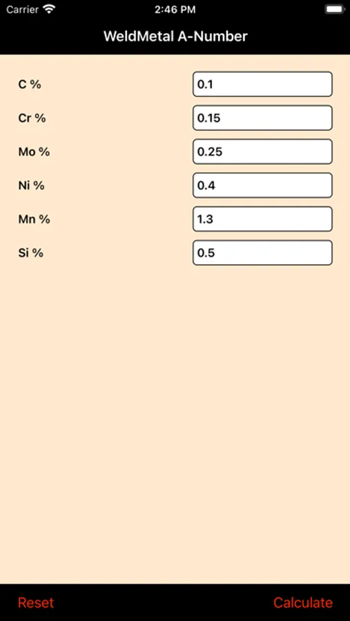 This app determine the assigned A-Number based on chemical composition in a "as weld" condition. Weld metal A-Number is used for procedure qualification. Changes in weld metal A-Number may require procedure re-qualification.