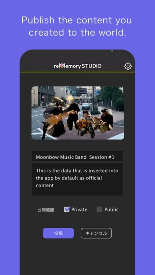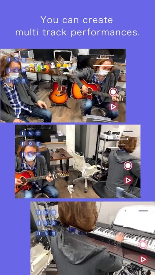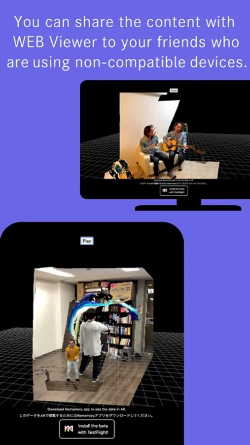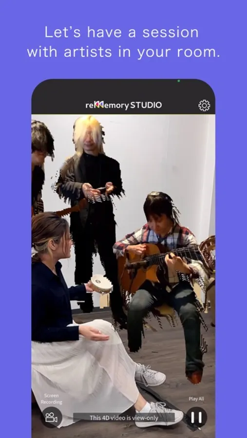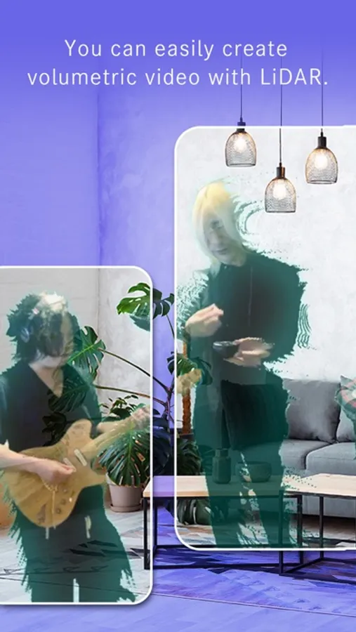 With LiDAR-enabled devices, you can shoot volumetric videos (spatio-temporal stereoscopic videos) with Rememory. Enjoy capturing performances, spatial messages, pets, and idea videos, and publish or send them to your friends.