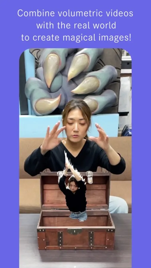 You can take a photo or record a video of the volumetric video you are watching with AR. Create new 2D contents by taking photos of them together.