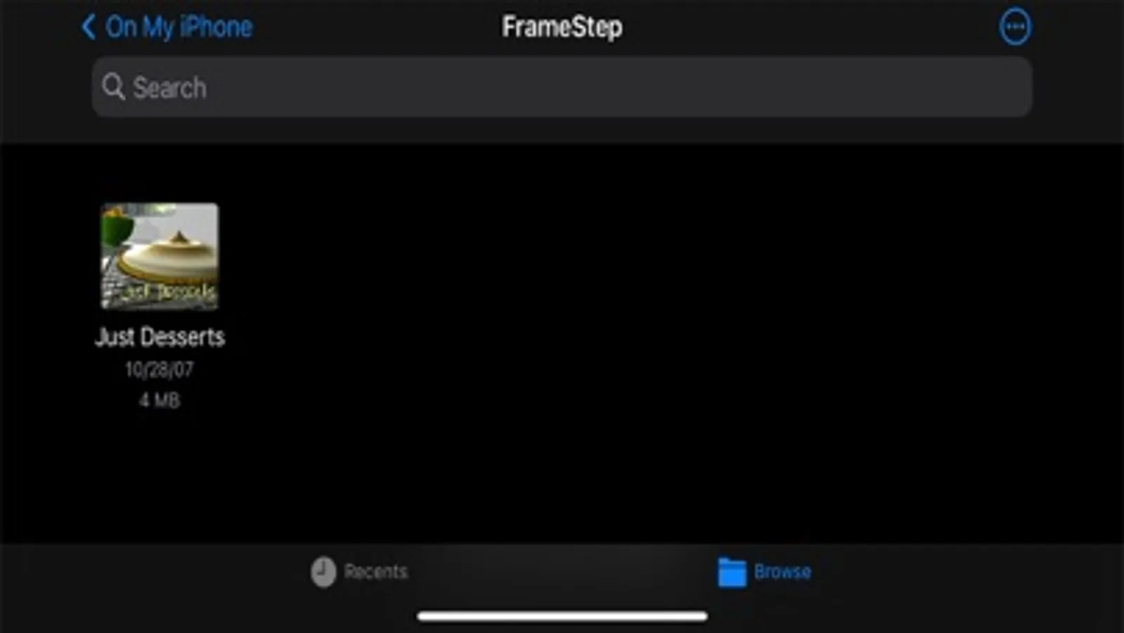 Videos maybe be opened though its interface, via the Files app, or through the Share sheet in another app. FrameStep does not read from your photos -- you must save videos from Photos to Files to view ones created on you iPad / iPhone.