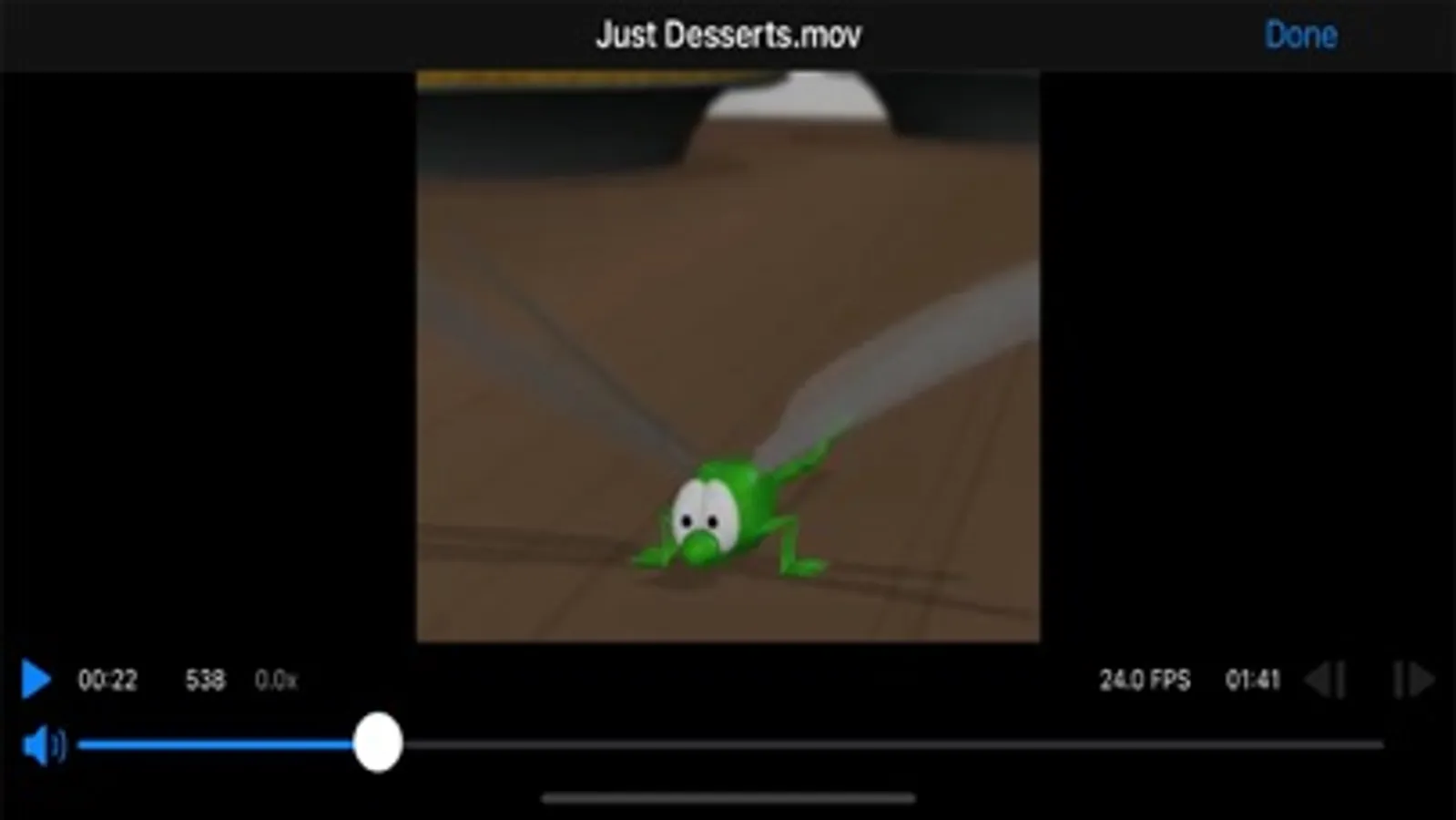 One screen controls are provided for basic operations like play/pause, frame ahead/back, and timeline scrubbing. Tapping the four quadrants of the video gives larger targets. With an attached keyboard, additional controls are available, like speed control in addition to the more common ones listed above.