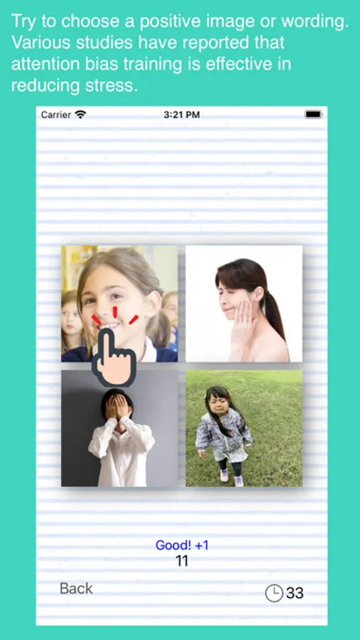 It has been found that training to repeat the selection of positive images and wording can reduce stress, depression and anxiety.