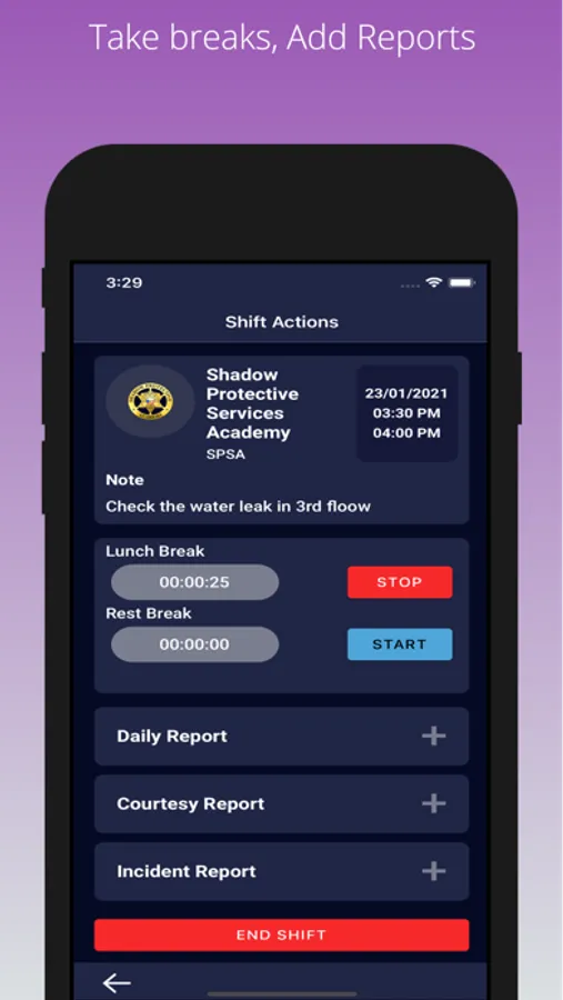 Officers being part of a security agency will get shifts assigned to them. You need not remember your shift timings and locations. SPSI Officer App does it all for you. You can check all your shifts and shift locations from one place.