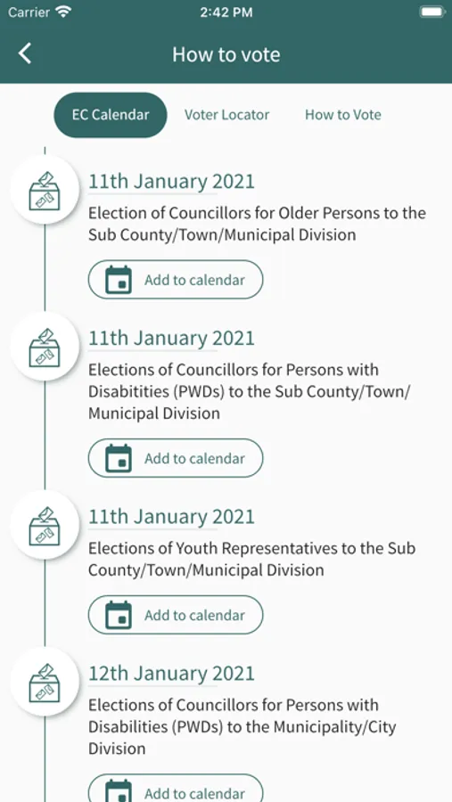 • Sync the Electoral Calendar to your default calendar and get reminders before and after important events
