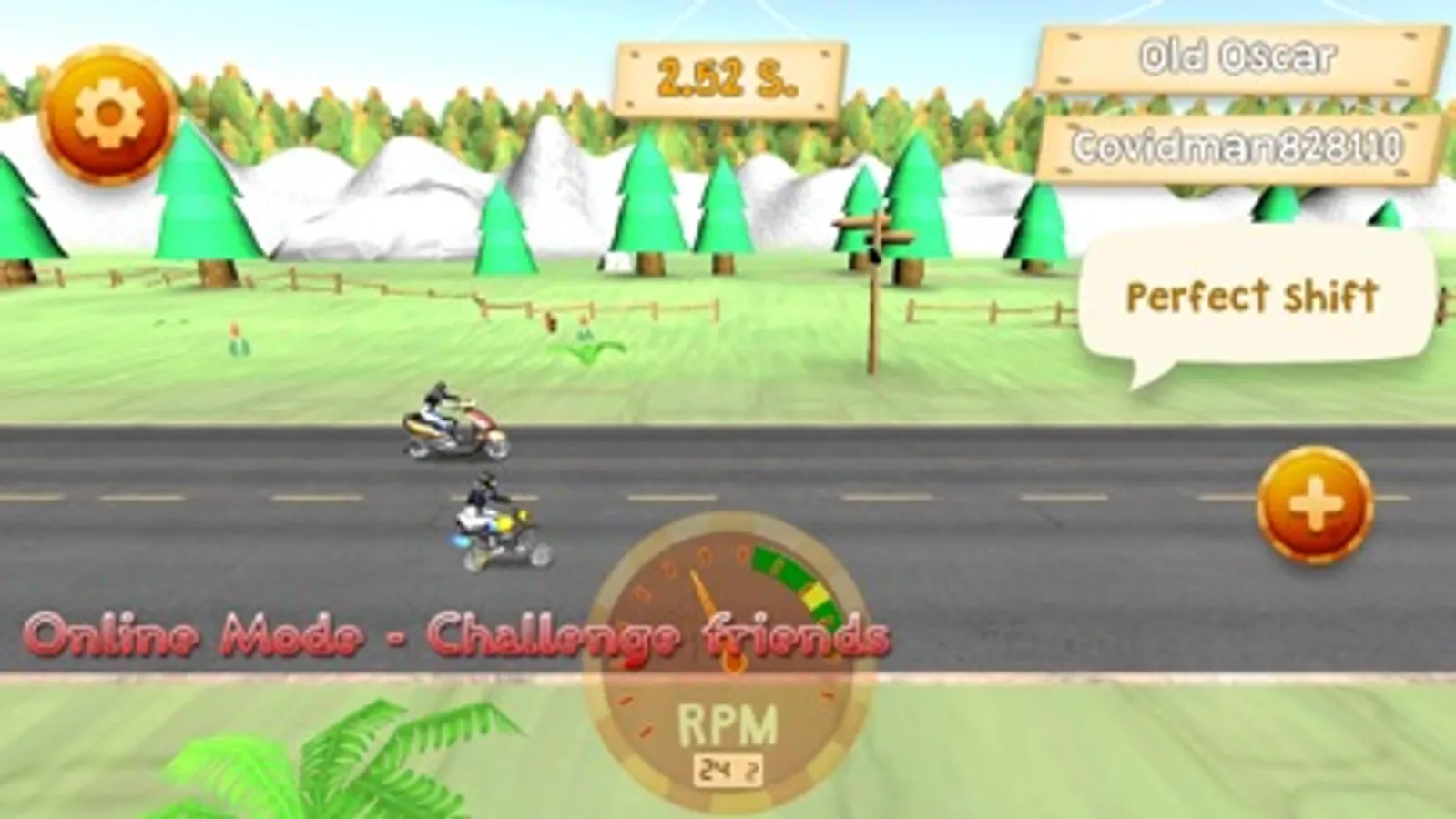 HOW TO PLAY: Hold Throttle and release when light goes to green! Then press plus button to change gear on correct time.