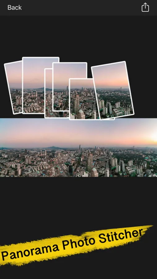 1 Simple and intuitive interface. Just select images and click “Stitch”.