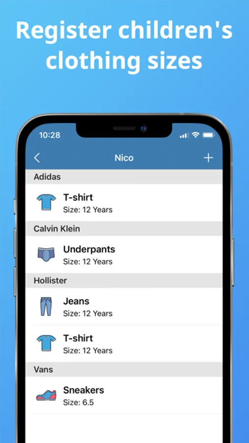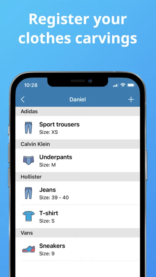 * Register the sizes of your favorite brands.