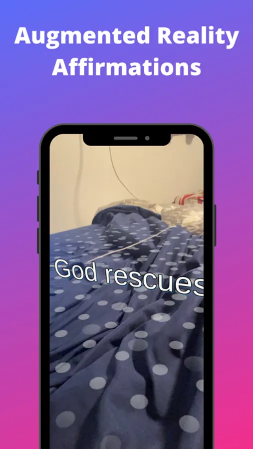 Augmented reality Bible affirmations. You can place these affirmations anywhere in your real space. Move around Apple device and look for a flat surface to set your plane then press the plane to display your affirmation via Augmented Reality