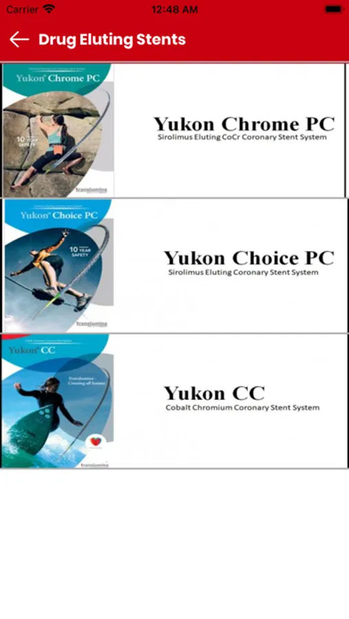 Products - Lists new upcoming modalities to manage coronary diseases and their training