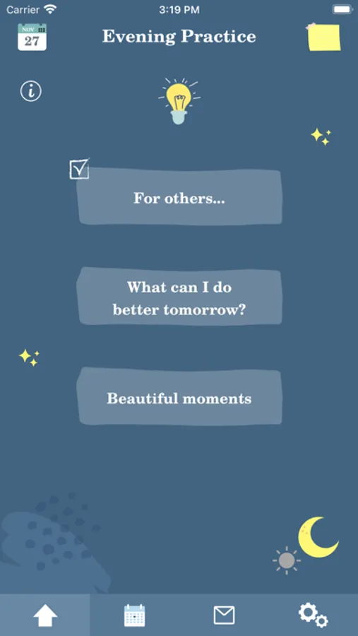 — answer daily questions, which help positive thinking and stress free mind become your habits