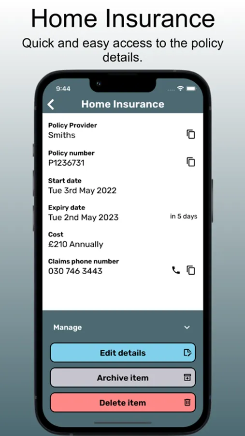 • Ever needed to know when your home insurance expires or the contact number for your breakdown service?