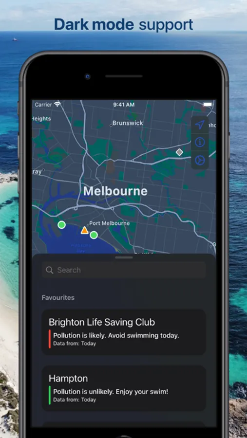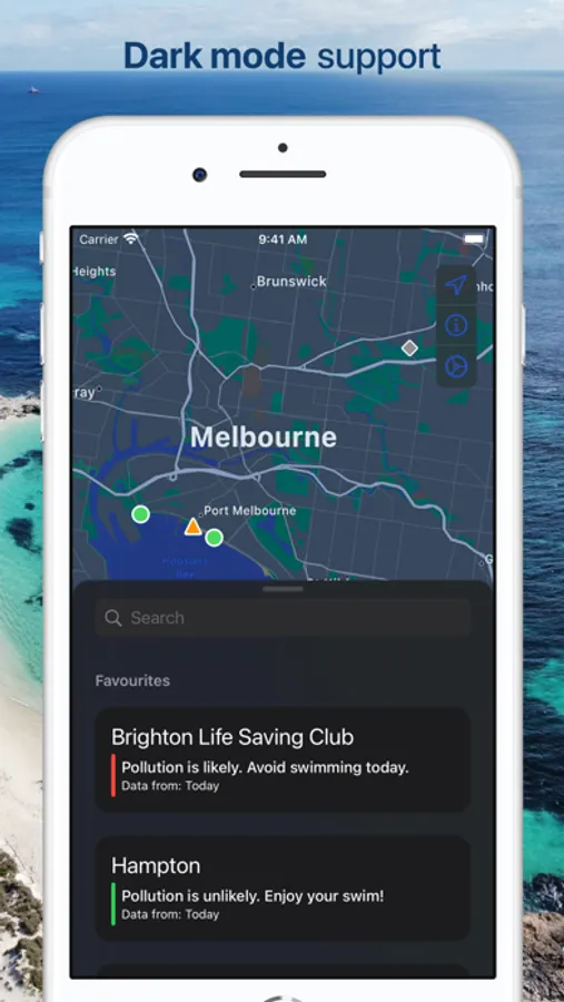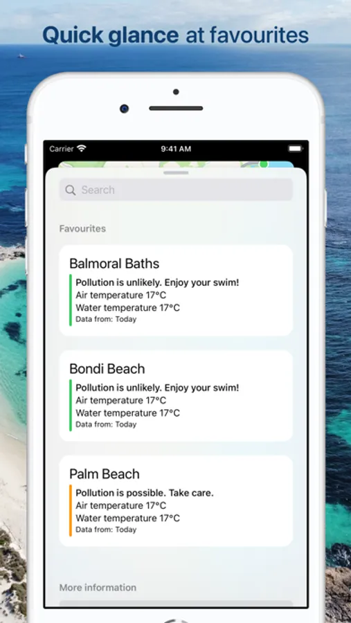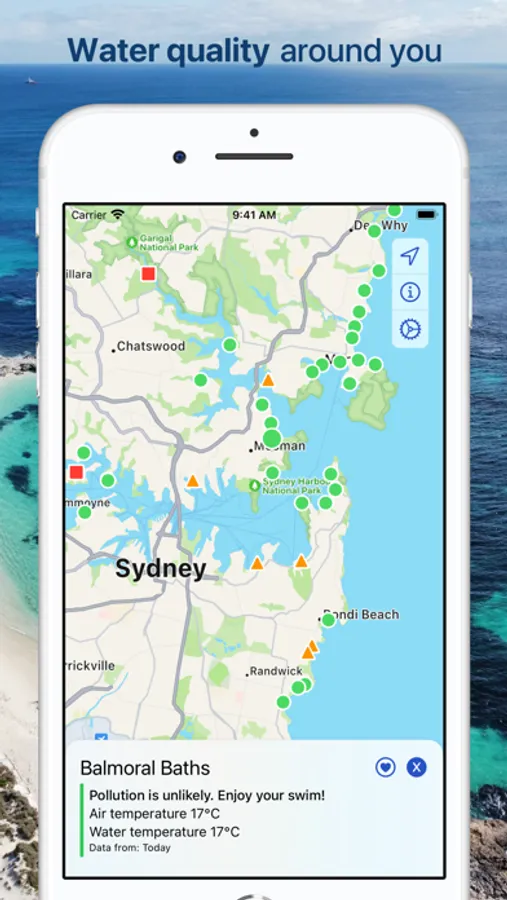 Easy and quick way to check water quality before you dip your toes in. The app shows beaches around you with pollution levels, water and air temperature (where supported). Check it on the map, in your favourites or even without opening the app on your home screen or lock screen via a configurable widget.