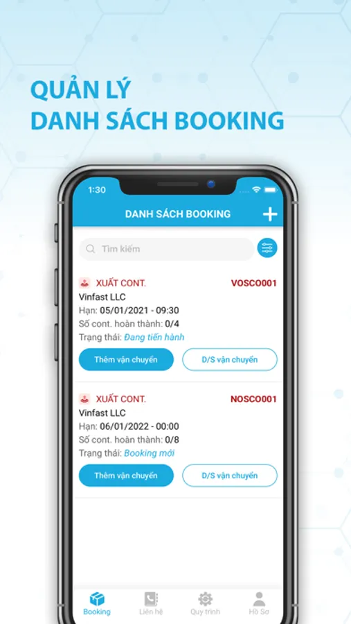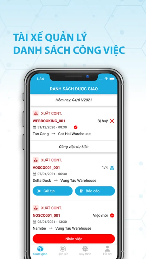 - Tiếp nhận thông tin vận chuyển container