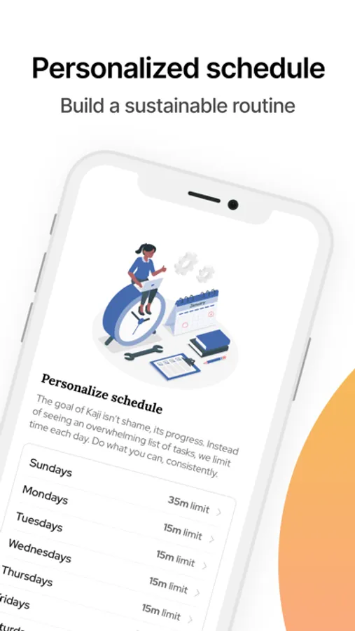 - Personalized schedule stops your from feeling overwhelmed by setting time limits