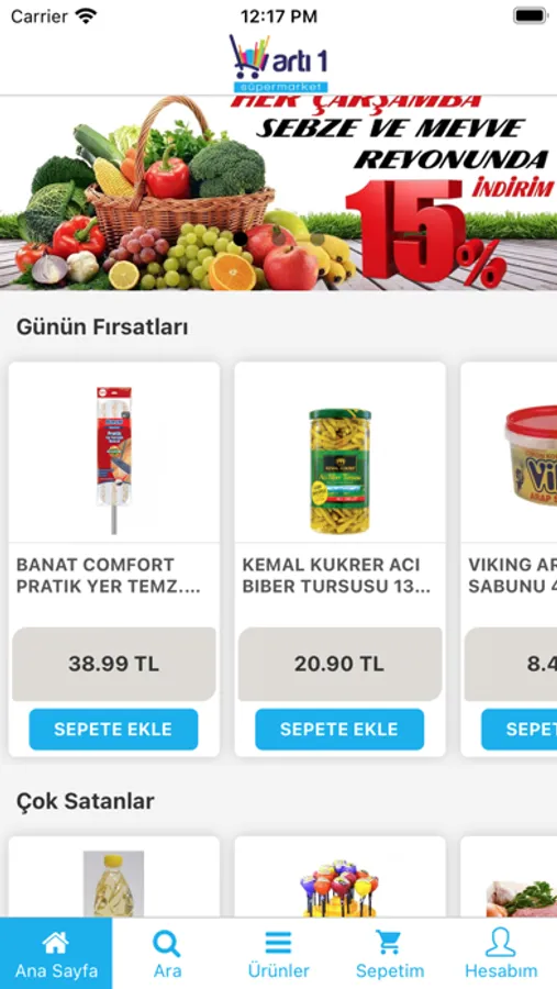 Artı 1 Süper Market uygulaması ile, meyve ve sebze, et ve tavuk, süt, kahvaltı ve şarküteri, atıştırmalık ve şekerleme, temel gıda, bebek ürünleri ve diğer tüm market uygulamalarını inceleyebilir ve sipariş verebilirsiniz.