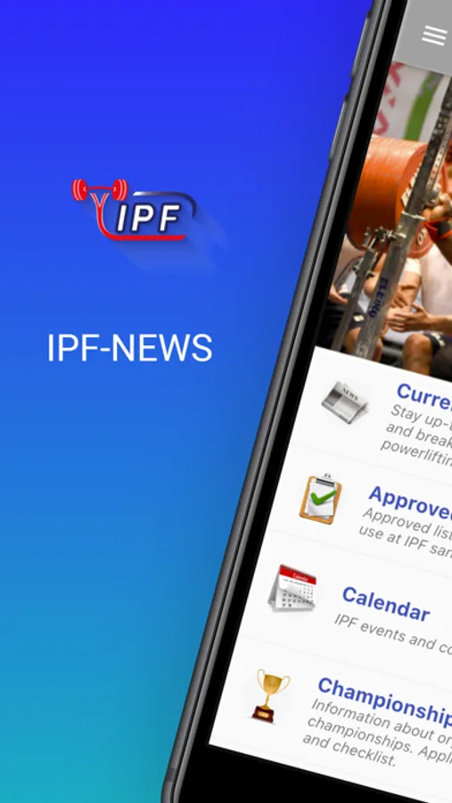 The IPF-NEWS mobile app also includes , news, events,youtube chanel,anti-doping and powerlifting online .
