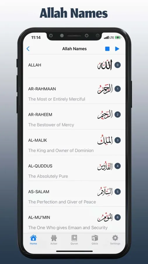 - تلاوة صوتية للقران الكريم مع الترجمة والتلفظ.