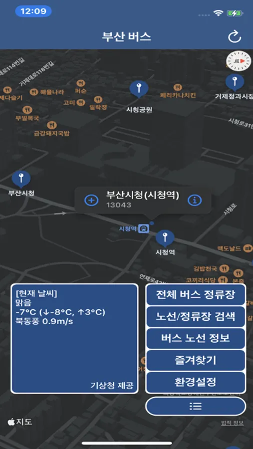 본 애플리케이션은 애플 지도를 기반으로 부산 버스 정보를 제공합니다.