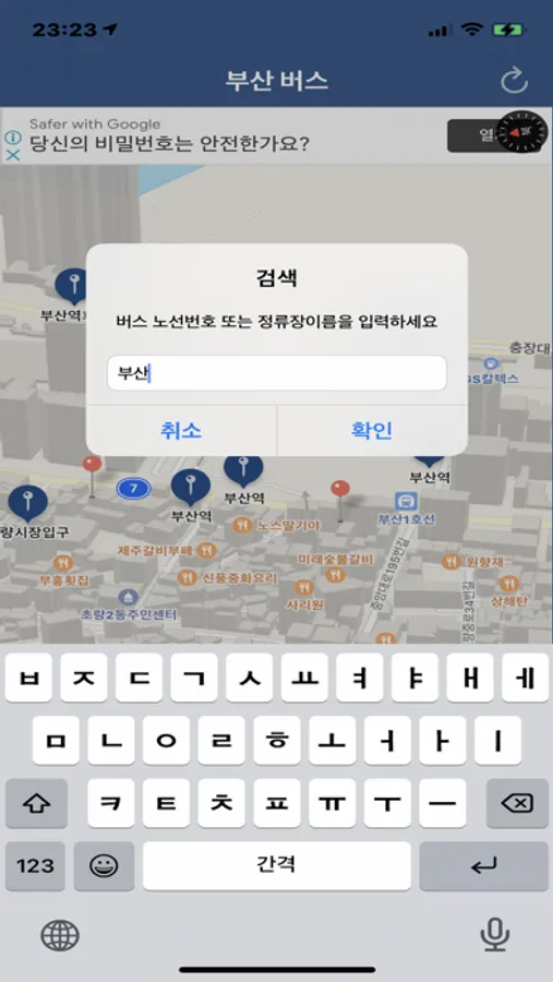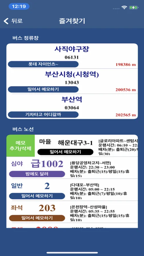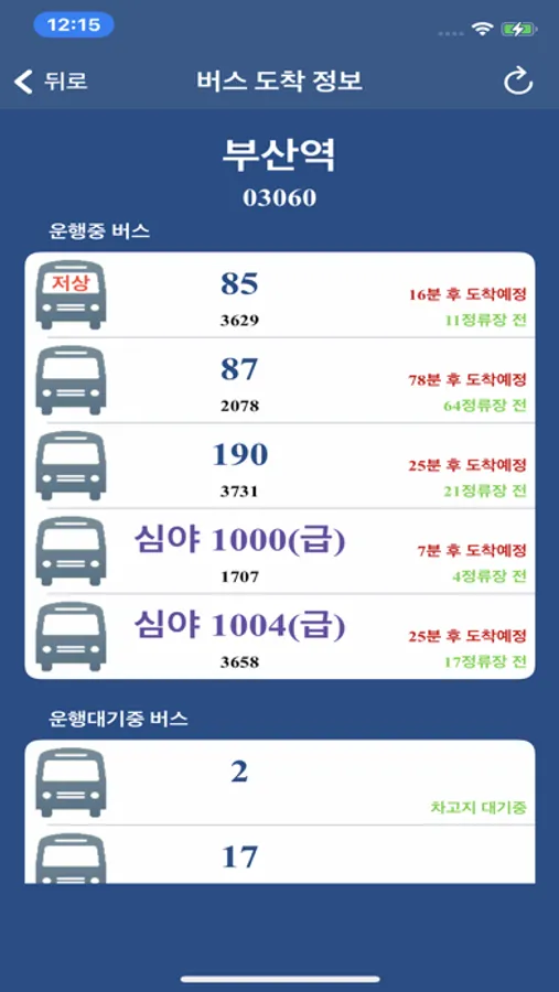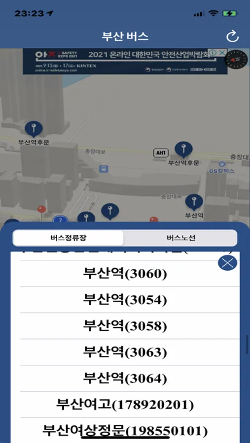 부산 시내 버스 노선번호 및 정류장을 검색할 수 있습니다.