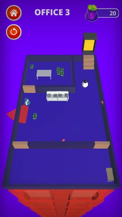 You're fed up with your office job because you're not moving up in the company, they're not paying you good, and they give you unreasonable deadlines. It's time to get back what you deserve. Collect the money in each office of the building you work in at night. Make it to the elevator without the police or security camera's seeing you! How much money can you get before you make it to the elevator... If you can even make it to the elevator at all...