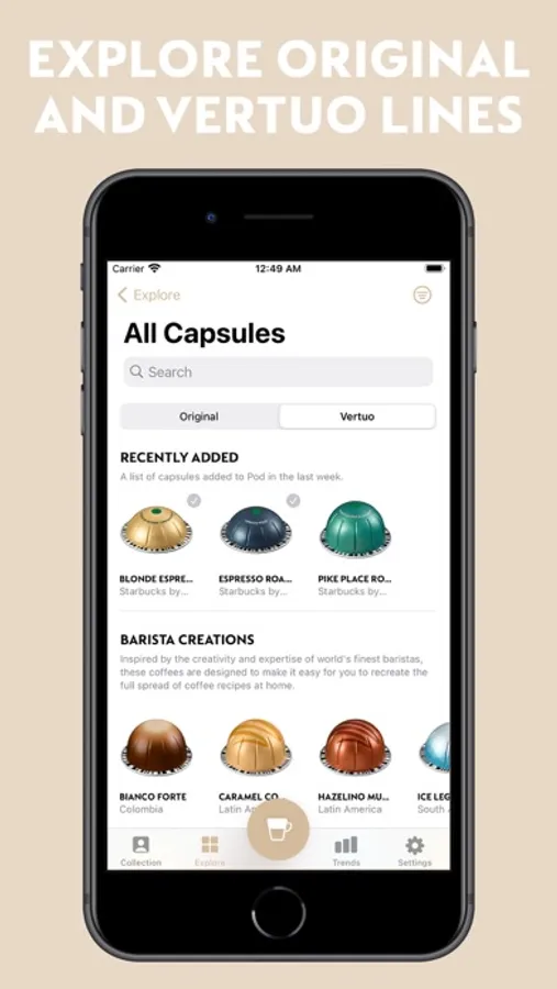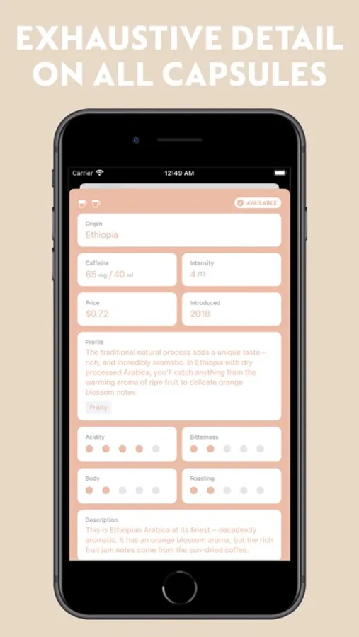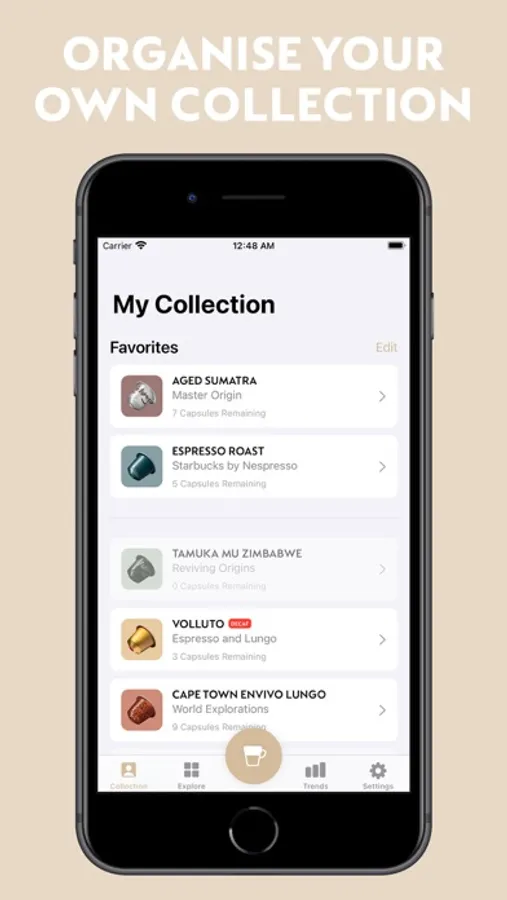 Organise your own collection of capsules and keep track of how many you have left within the app. Your collection is stored safely within iCloud and can be accessed across all of your devices.