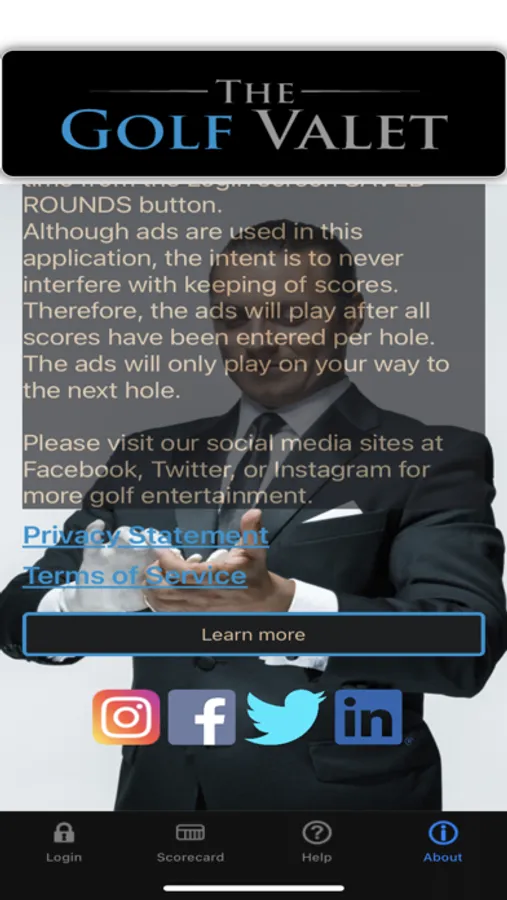 No complications, no bells and whistles, just simple. How much simpler can it be to not keep your own score!? Make your buddy do it. The Golf Valet supports up to 4 players playing 2 tees on a single device. Let them register at www.thegolfvalet.com so this app can download the course or courses you need. Download once and save the course so you don't have to download it again. They can search for your course by name, city, or state so there should be no complaints. It's easy. What!? Your course isn't found? Ask them why they haven't gone to www.thegolfvalet.com and created the course? Show your disappointment. See your course, but it's wrong? Report it, right from the app! Although this app does play ads, they'll only see them as you travel from one hole to another. You won't notice a thing. The ads don't interfere with the entering of scores nor gameplay. Simple, intuitive, and beautiful and only one in the group gets the privilege. The rest get to shave off a few strokes as they forget to include that shank shot off the tee.