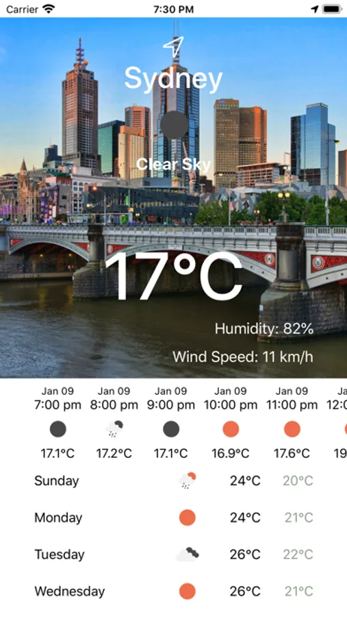 - Minimalist design that gives all the weather information you need. Humidity and wind speed are found.